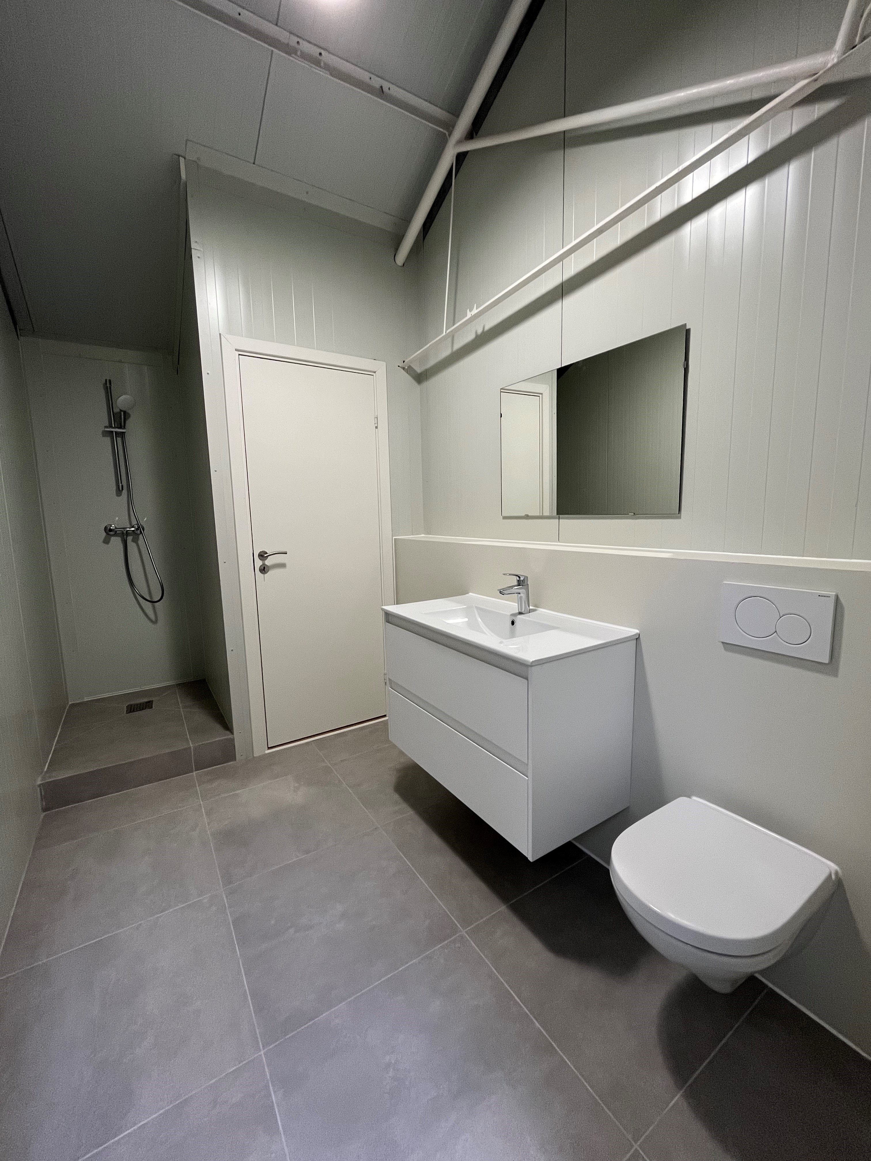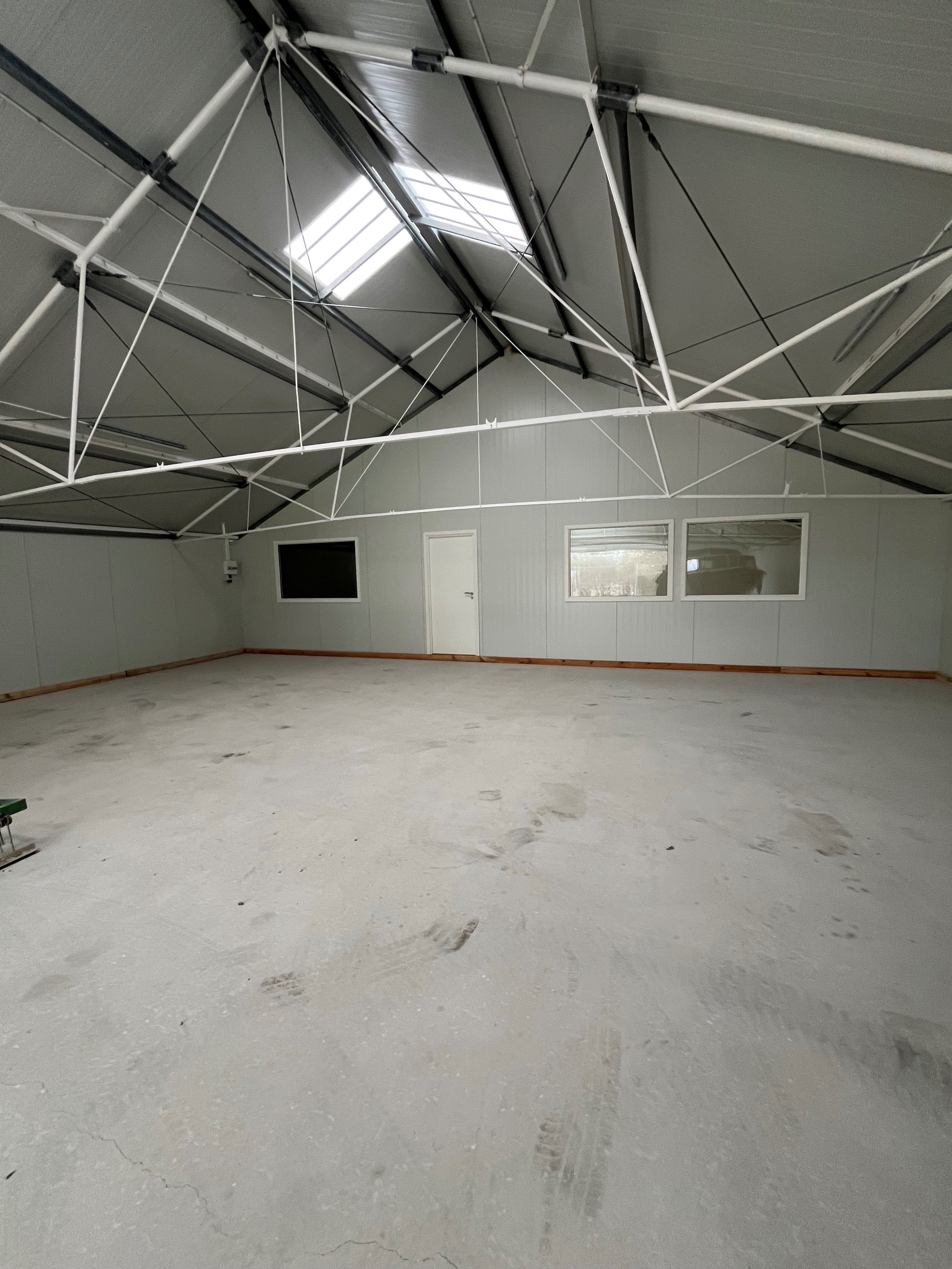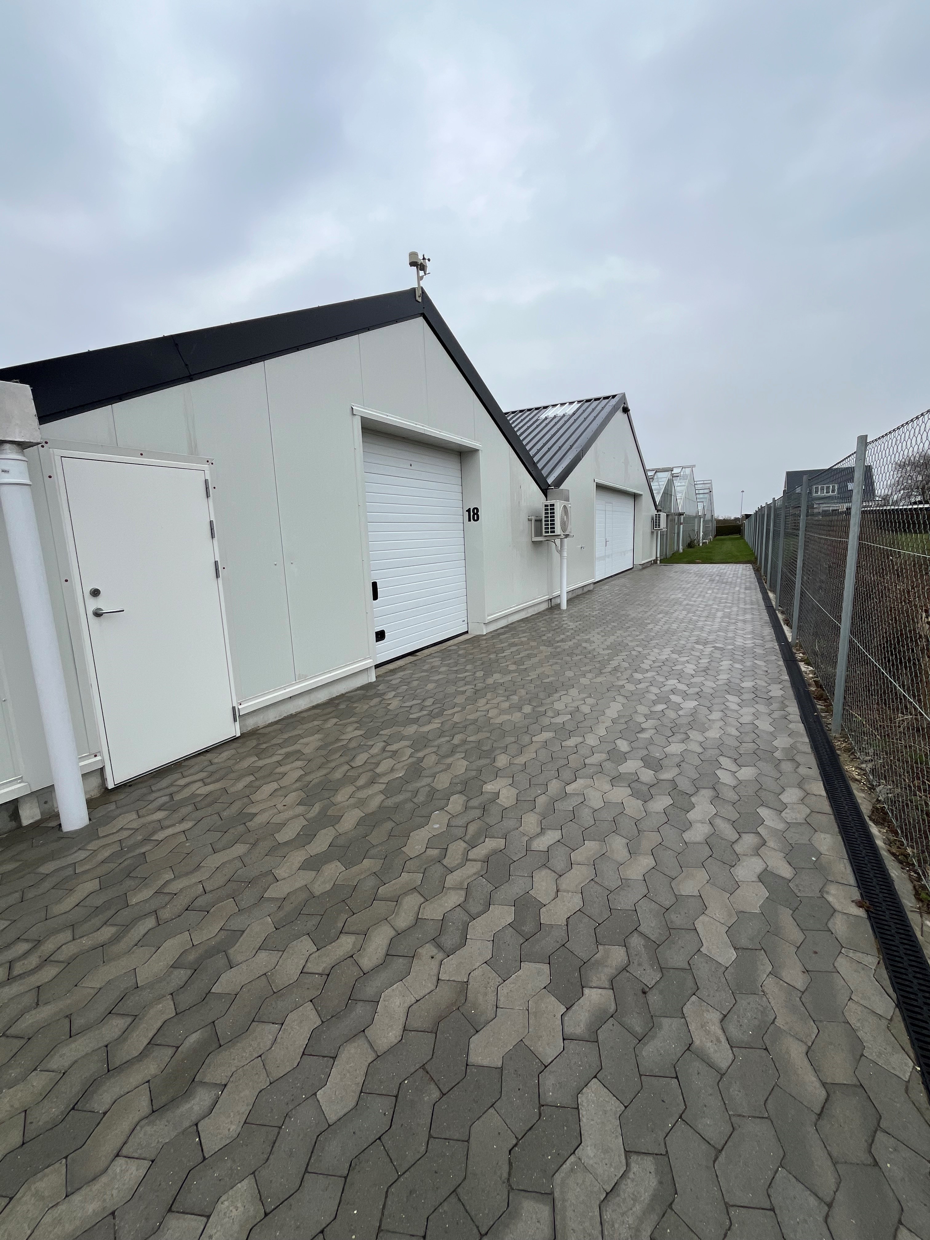 Kontorområdet er moderne og opdelt i to separate rum, hvilket giver gode muligheder for både administration, møder og daglig drift. Der er desuden visuel kontakt mellem kontor og lager via vinduesparti.