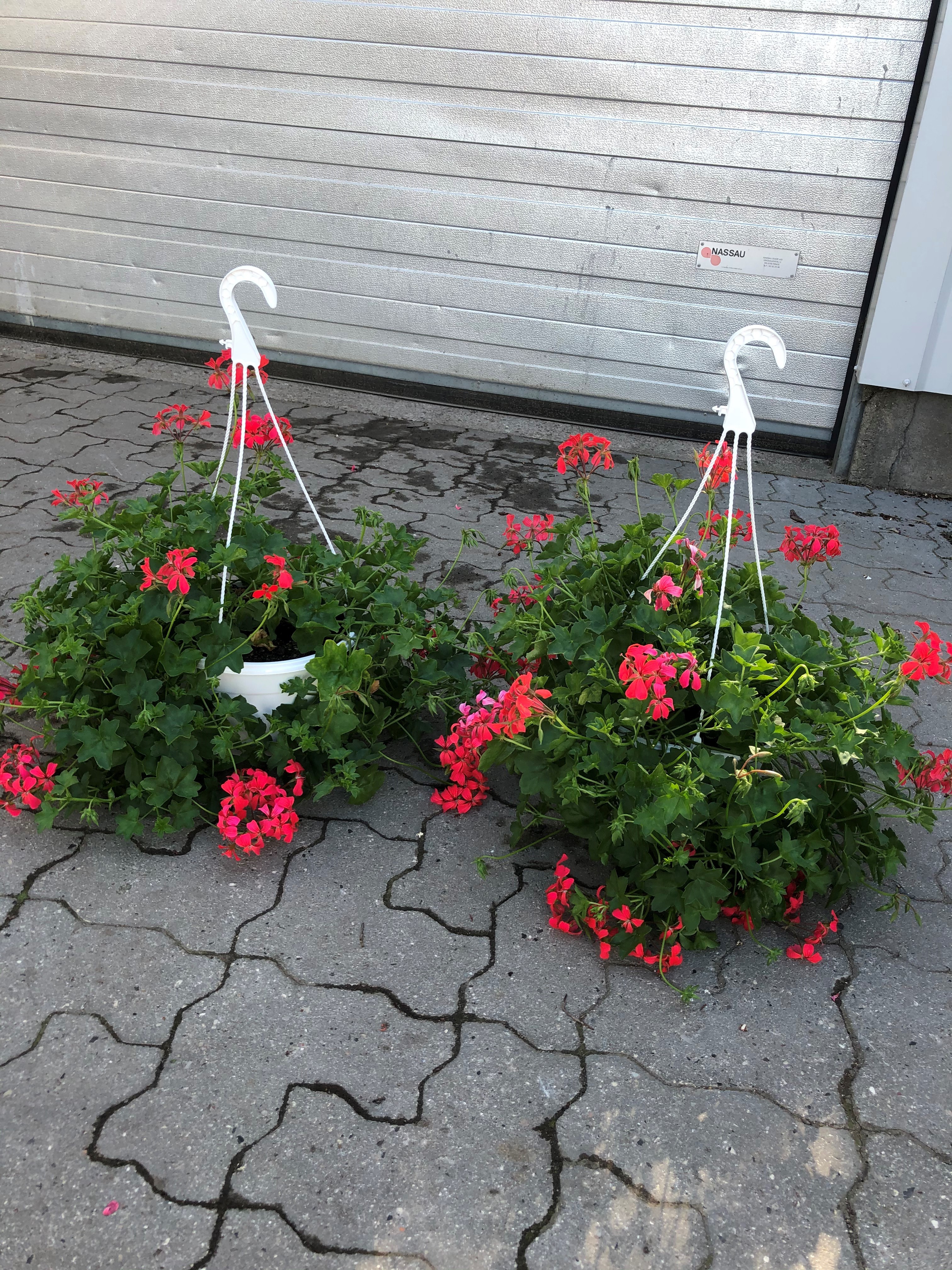 Petunia i ampel, flotte farver. Mette blander et flot mix.