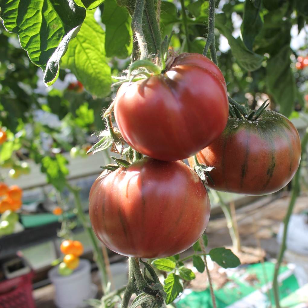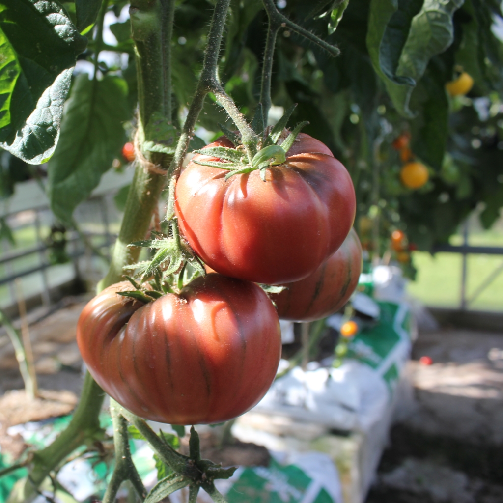 Black Russian er en stor saftig maghoni brun tomat. Smagen er kompleks med en god blanding af sødme og syre.
