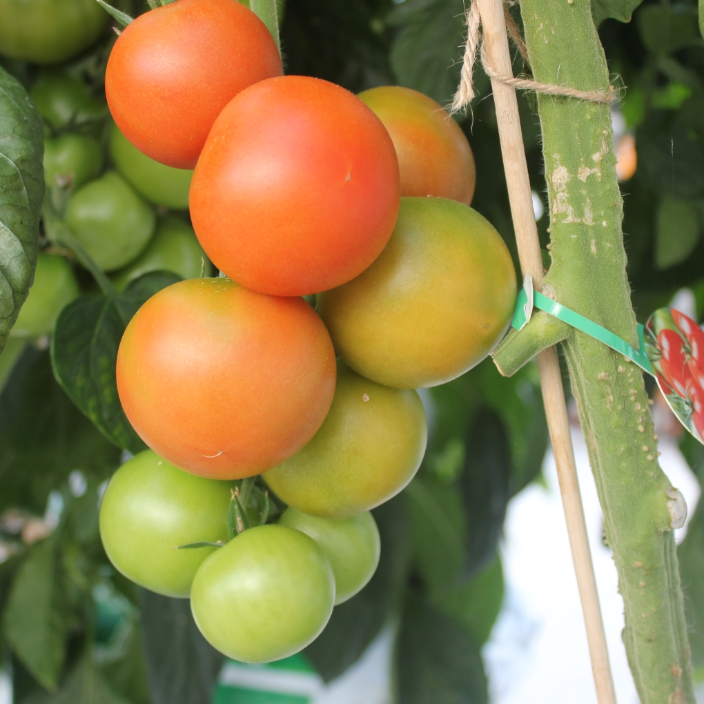 Tomatplanter er selvbestøvende, for at sikre optimal bestøvning af planterne, er det godt at ryste planterne forsigtigt et par gange om ugen.