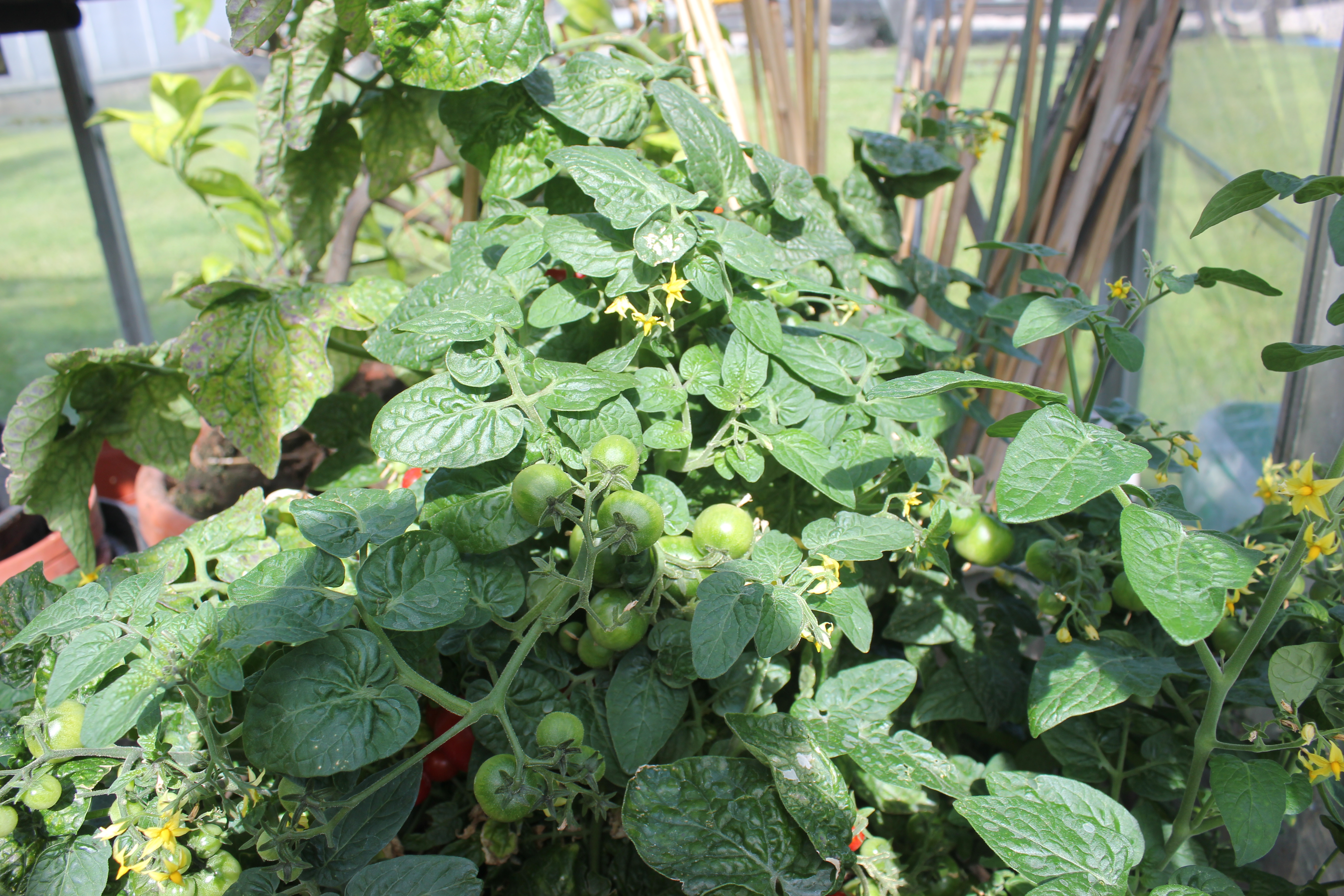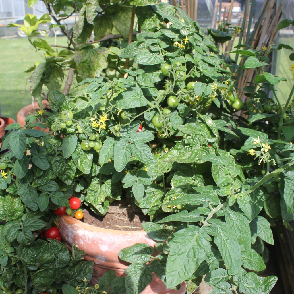 Tomatplanter er selvbestøvende, for at sikre optimal bestøvning af planterne, er det godt at ryste planterne forsigtigt et par gange om ugen.